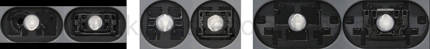 *Zdarza się, że w poszczególnych modelach klawiatury stosuje się więcej typów mocowań niż te trzy pokazane na zdjęciach; niektóre klawisze mają też metalowe zawiasy.