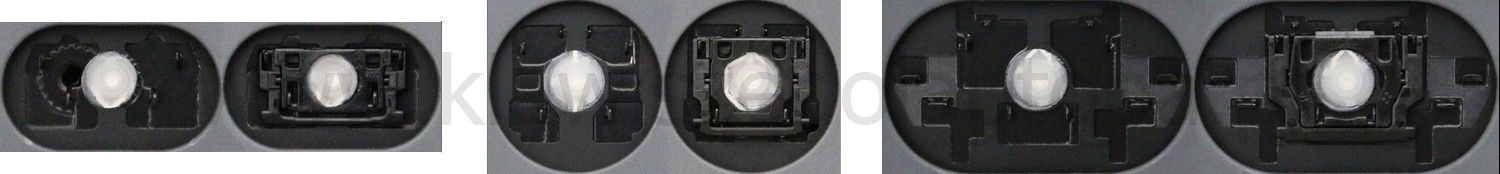 - Aby wybrać właściwy model, porównaj zdjęcie pustego miejsca na swojej klawiaturze ze zdjęciami poniżej, ewentualnie zdejmij klawisz „A” - pod nim zawsze jest zaczep średni.