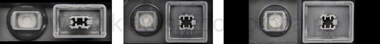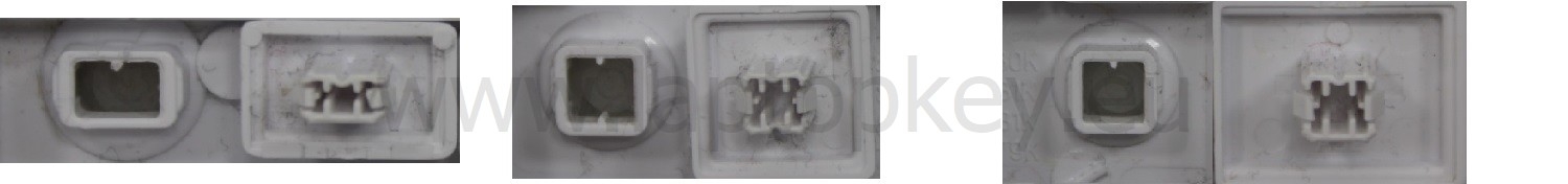 - Aby wybrać właściwy model, porównaj zdjęcie pustego miejsca na swojej klawiaturze ze zdjęciami poniżej, ewentualnie zdejmij klawisz „A” - pod nim zawsze jest zaczep średni.