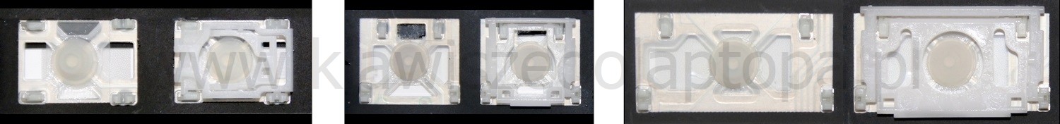 *Zdarza się, że w poszczególnych modelach klawiatury stosuje się więcej typów mocowań niż te trzy pokazane na zdjęciach; niektóre klawisze mają też metalowe zawiasy.