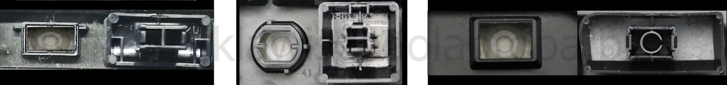 - W większości klawiatur wyglądających identycznie z zewnątrz stosowane były różne typy mocowań pod klawiszami.