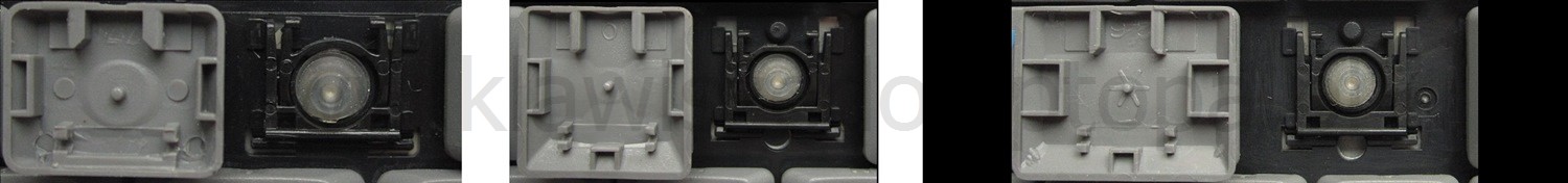 *Zdarza się, że w poszczególnych modelach klawiatury stosuje się więcej typów mocowań niż te trzy pokazane na zdjęciach; niektóre klawisze mają też metalowe zawiasy.