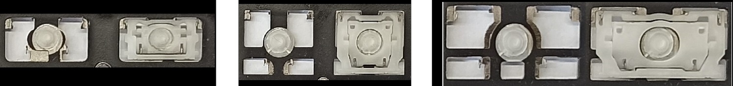 *Zdarza się, że w poszczególnych modelach klawiatury stosuje się więcej typów mocowań niż te trzy pokazane na zdjęciach; niektóre klawisze mają też metalowe zawiasy.