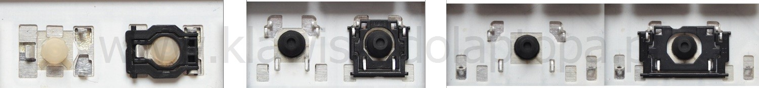 *Zdarza się, że w poszczególnych modelach klawiatury stosuje się więcej typów mocowań niż te trzy pokazane na zdjęciach; niektóre klawisze mają też metalowe zawiasy.