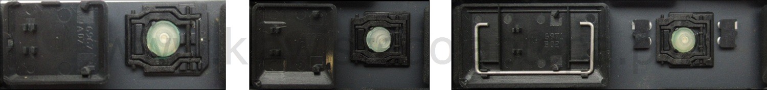- Aby wybrać właściwy model, porównaj zdjęcie pustego miejsca na swojej klawiaturze ze zdjęciami poniżej, ewentualnie zdejmij klawisz „A” - pod nim zawsze jest zaczep średni.