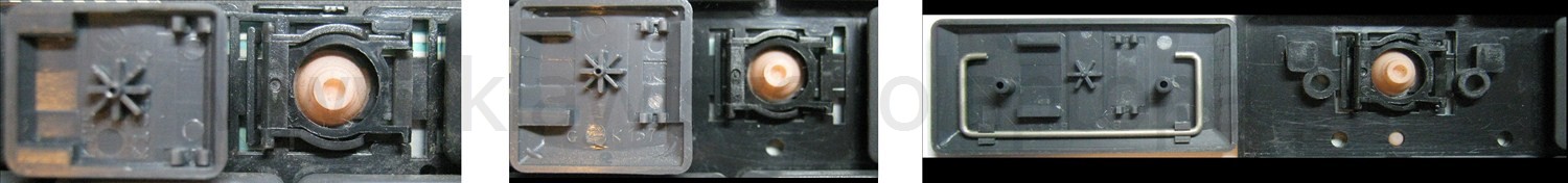 *Zdarza się, że w poszczególnych modelach klawiatury stosuje się więcej typów mocowań niż te trzy pokazane na zdjęciach; niektóre klawisze mają też metalowe zawiasy.
