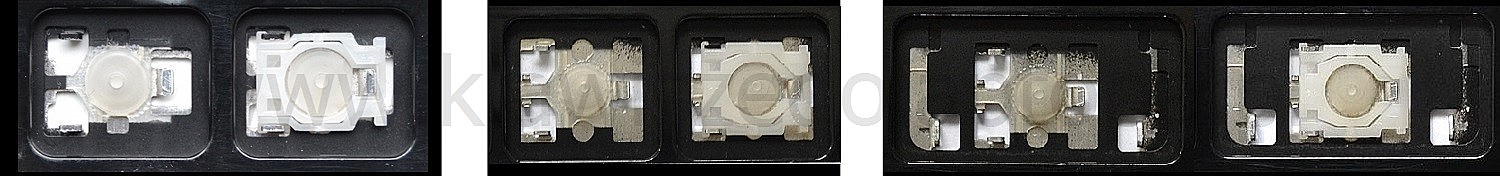 - W większości klawiatur wyglądających identycznie z zewnątrz stosowane były różne typy mocowań pod klawiszami.