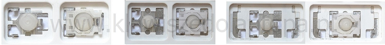 *Zdarza się, że w poszczególnych modelach klawiatury stosuje się więcej typów mocowań niż te trzy pokazane na zdjęciach; niektóre klawisze mają też metalowe zawiasy.