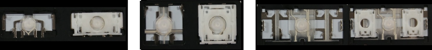 - W większości klawiatur wyglądających identycznie z zewnątrz stosowane były różne typy mocowań pod klawiszami.