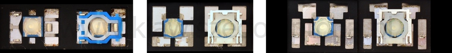 - W większości klawiatur wyglądających identycznie z zewnątrz stosowane były różne typy mocowań pod klawiszami.