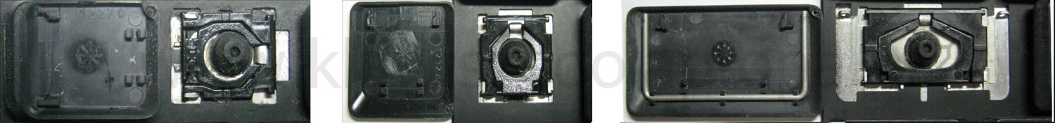 *Zdarza się, że w poszczególnych modelach klawiatury stosuje się więcej typów mocowań niż te trzy pokazane na zdjęciach; niektóre klawisze mają też metalowe zawiasy.