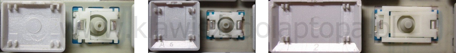- Aby wybrać właściwy model, porównaj zdjęcie pustego miejsca na swojej klawiaturze ze zdjęciami poniżej, ewentualnie zdejmij klawisz „A” - pod nim zawsze jest zaczep średni.