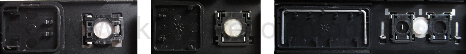 - Aby wybrać właściwy model, porównaj zdjęcie pustego miejsca na swojej klawiaturze ze zdjęciami poniżej, ewentualnie zdejmij klawisz „A” - pod nim zawsze jest zaczep średni.