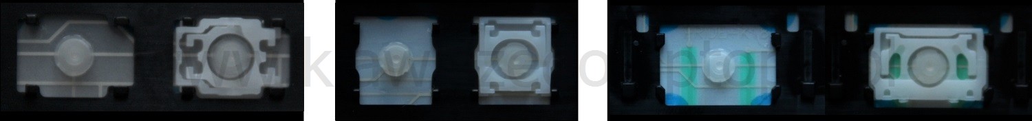 - W większości klawiatur wyglądających identycznie z zewnątrz stosowane były różne typy mocowań pod klawiszami.
