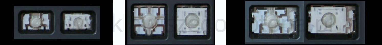 *Zdarza się, że w poszczególnych modelach klawiatury stosuje się więcej typów mocowań niż te trzy pokazane na zdjęciach; niektóre klawisze mają też metalowe zawiasy.