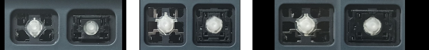 *Zdarza się, że w poszczególnych modelach klawiatury stosuje się więcej typów mocowań niż te trzy pokazane na zdjęciach; niektóre klawisze mają też metalowe zawiasy.