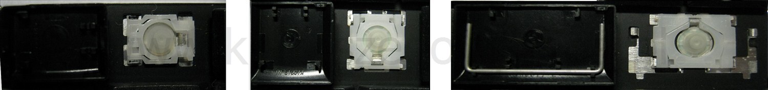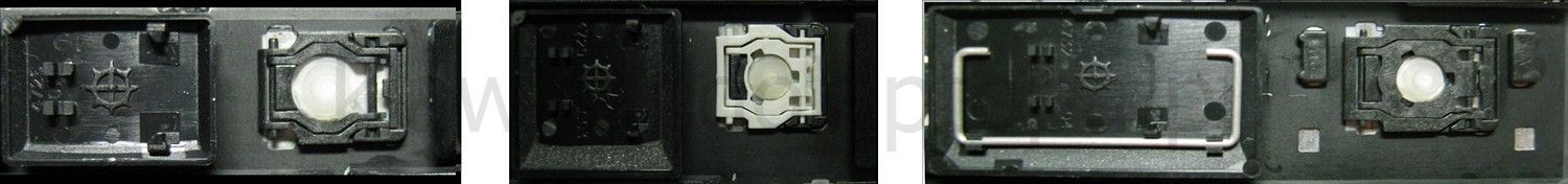 *Zdarza się, że w poszczególnych modelach klawiatury stosuje się więcej typów mocowań niż te trzy pokazane na zdjęciach; niektóre klawisze mają też metalowe zawiasy.