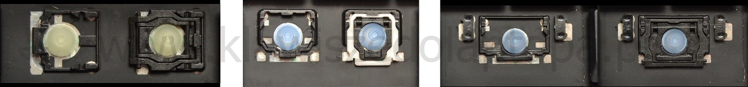 - W większości klawiatur wyglądających identycznie z zewnątrz stosowane były różne typy mocowań pod klawiszami.
