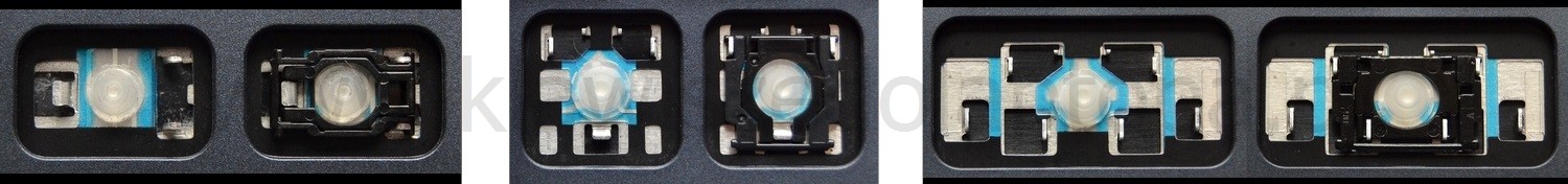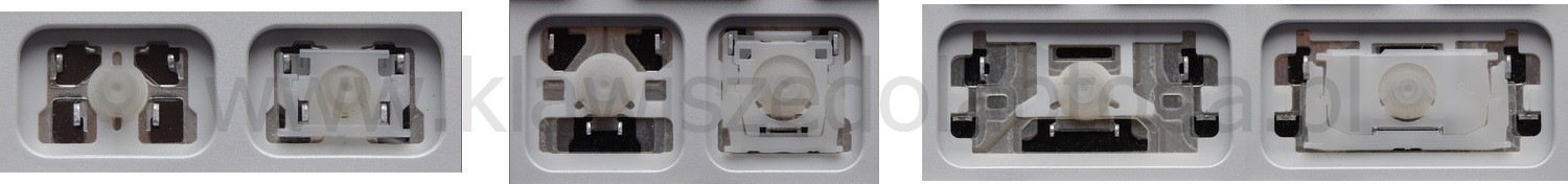 *Zdarza się, że w poszczególnych modelach klawiatury stosuje się więcej typów mocowań niż te trzy pokazane na zdjęciach; niektóre klawisze mają też metalowe zawiasy.
