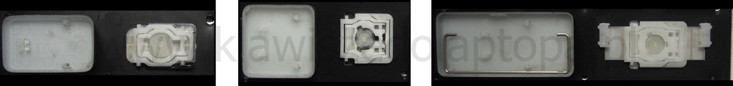 *Zdarza się, że w poszczególnych modelach klawiatury stosuje się więcej typów mocowań niż te trzy pokazane na zdjęciach; niektóre klawisze mają też metalowe zawiasy.