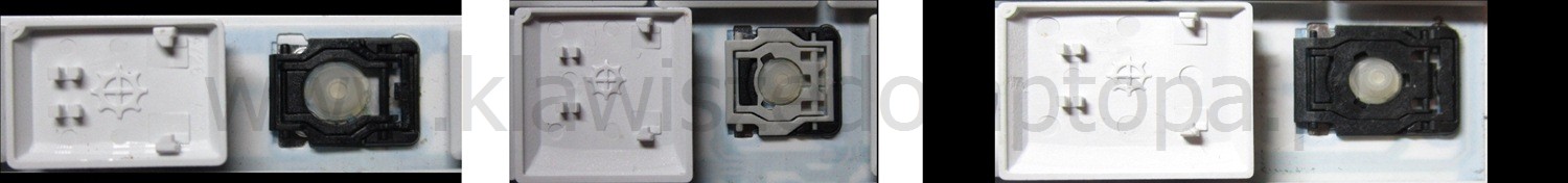 *Zdarza się, że w poszczególnych modelach klawiatury stosuje się więcej typów mocowań niż te trzy pokazane na zdjęciach; niektóre klawisze mają też metalowe zawiasy.