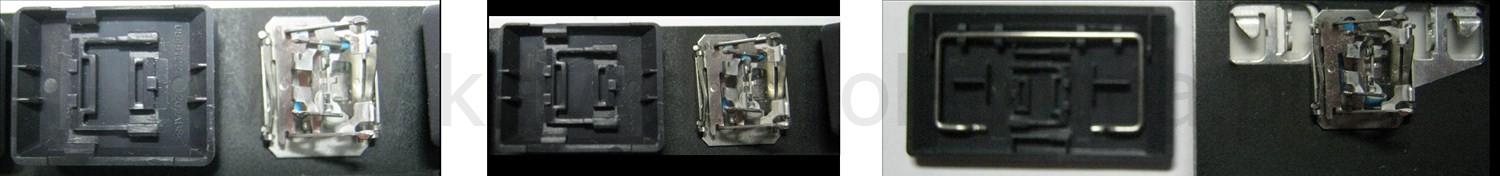 *Zdarza się, że w poszczególnych modelach klawiatury stosuje się więcej typów mocowań niż te trzy pokazane na zdjęciach; niektóre klawisze mają też metalowe zawiasy.