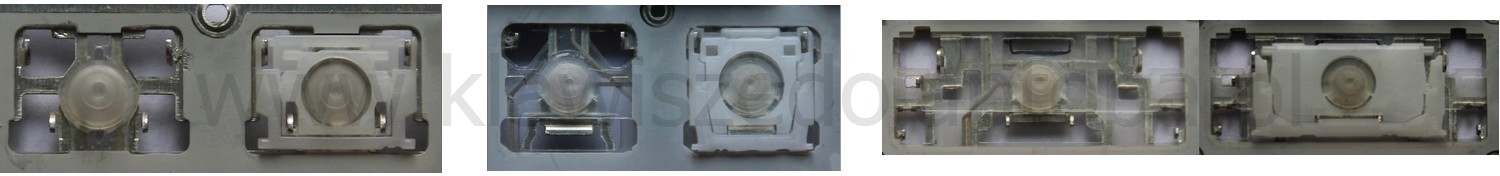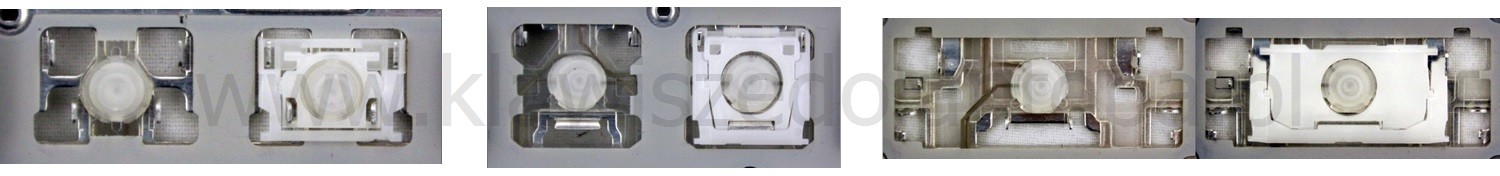 *Zdarza się, że w poszczególnych modelach klawiatury stosuje się więcej typów mocowań niż te trzy pokazane na zdjęciach; niektóre klawisze mają też metalowe zawiasy.