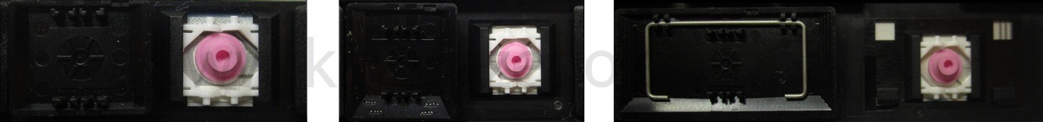 - Aby wybrać właściwy model, porównaj zdjęcie pustego miejsca na swojej klawiaturze ze zdjęciami poniżej, ewentualnie zdejmij klawisz „A” - pod nim zawsze jest zaczep średni.