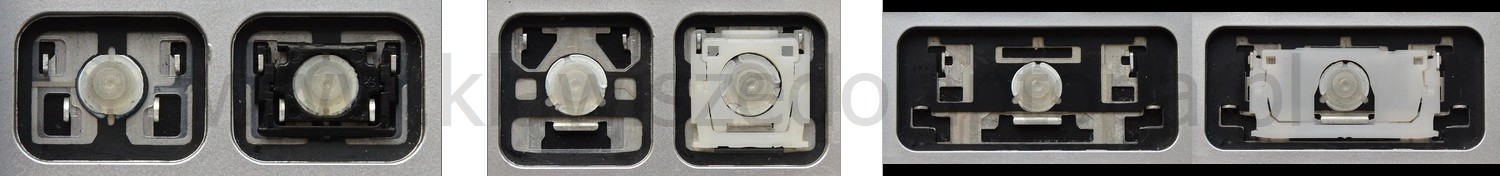 *Zdarza się, że w poszczególnych modelach klawiatury stosuje się więcej typów mocowań niż te trzy pokazane na zdjęciach; niektóre klawisze mają też metalowe zawiasy.