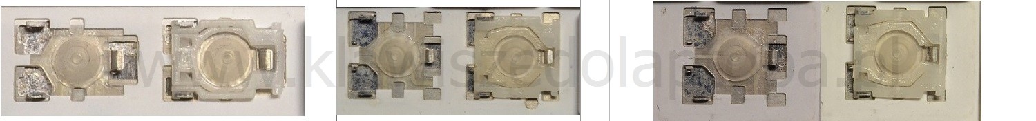 *Zdarza się, że w poszczególnych modelach klawiatury stosuje się więcej typów mocowań niż te trzy pokazane na zdjęciach; niektóre klawisze mają też metalowe zawiasy.