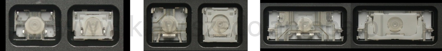 *Zdarza się, że w poszczególnych modelach klawiatury stosuje się więcej typów mocowań niż te trzy pokazane na zdjęciach; niektóre klawisze mają też metalowe zawiasy.