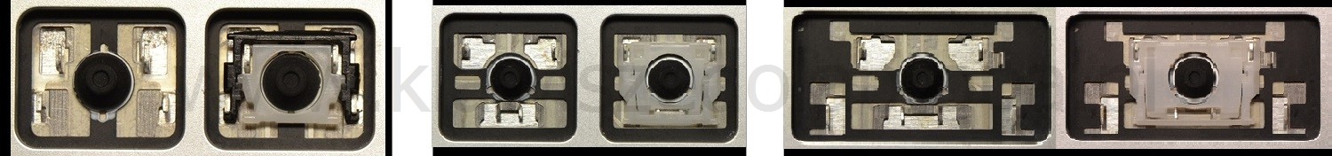 *Zdarza się, że w poszczególnych modelach klawiatury stosuje się więcej typów mocowań niż te trzy pokazane na zdjęciach; niektóre klawisze mają też metalowe zawiasy.