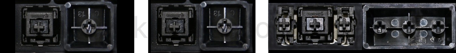 - W większości klawiatur wyglądających identycznie z zewnątrz stosowane były różne typy mocowań pod klawiszami.