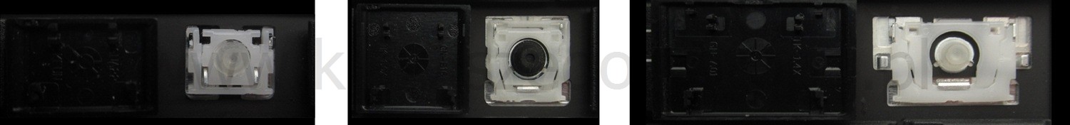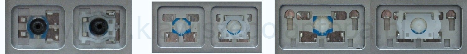 *Zdarza się, że w poszczególnych modelach klawiatury stosuje się więcej typów mocowań niż te trzy pokazane na zdjęciach; niektóre klawisze mają też metalowe zawiasy.