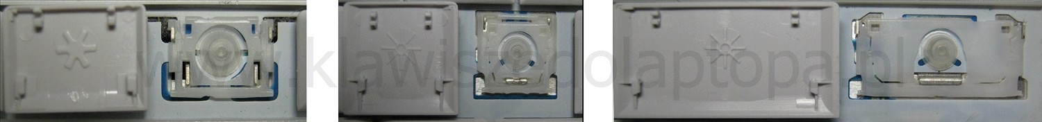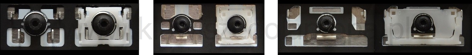 *Zdarza się, że w poszczególnych modelach klawiatury stosuje się więcej typów mocowań niż te trzy pokazane na zdjęciach; niektóre klawisze mają też metalowe zawiasy.