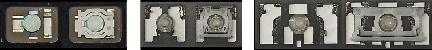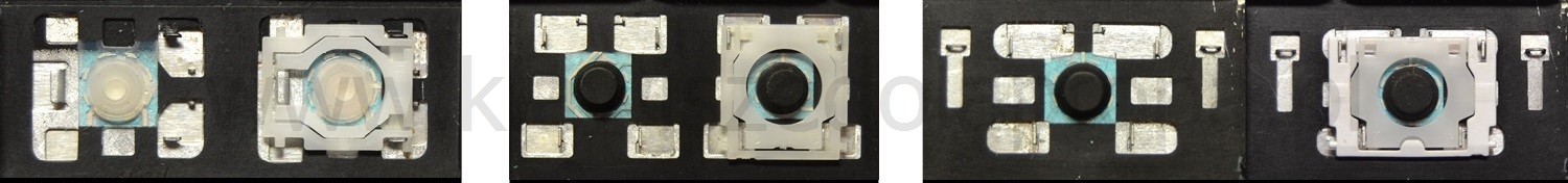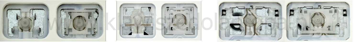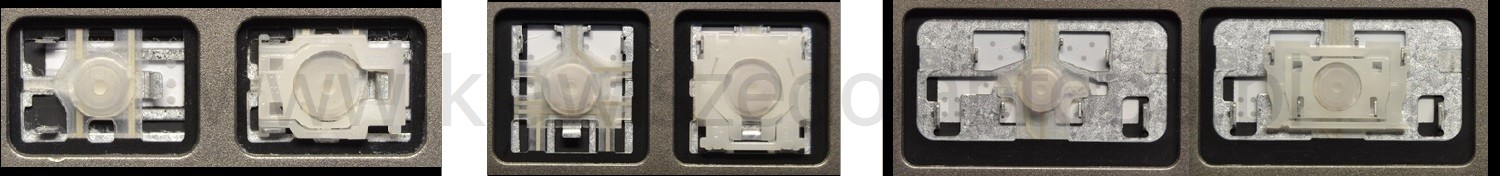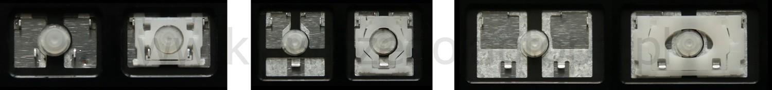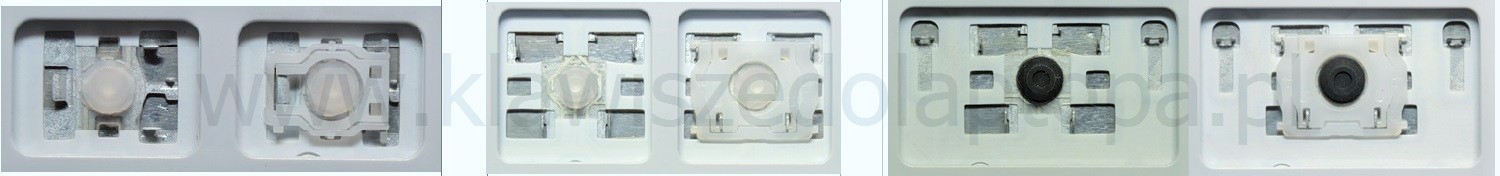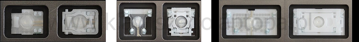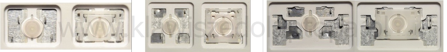 *Zdarza się, że w poszczególnych modelach klawiatury stosuje się więcej typów mocowań niż te trzy pokazane na zdjęciach; niektóre klawisze mają też metalowe zawiasy.