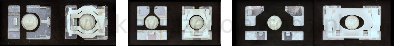 - W większości klawiatur wyglądających identycznie z zewnątrz stosowane były różne typy mocowań pod klawiszami.