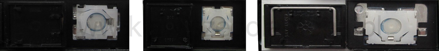 *Zdarza się, że w poszczególnych modelach klawiatury stosuje się więcej typów mocowań niż te trzy pokazane na zdjęciach; niektóre klawisze mają też metalowe zawiasy.