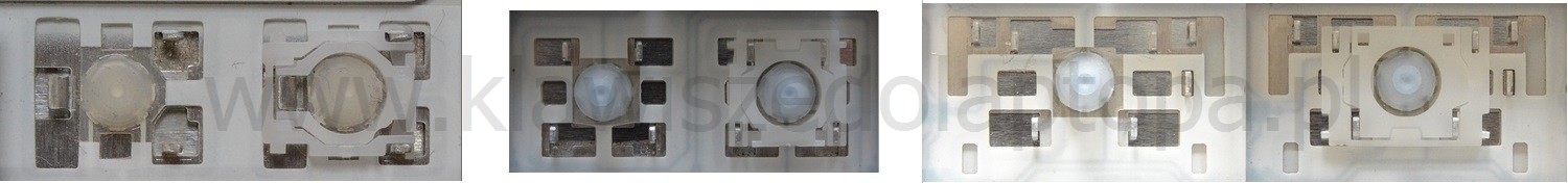 - W większości klawiatur wyglądających identycznie z zewnątrz stosowane były różne typy mocowań pod klawiszami.