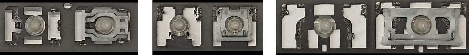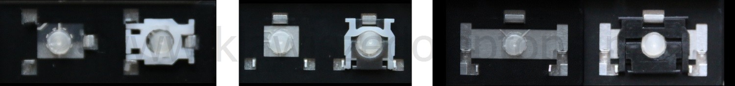 *Zdarza się, że w poszczególnych modelach klawiatury stosuje się więcej typów mocowań niż te trzy pokazane na zdjęciach; niektóre klawisze mają też metalowe zawiasy.