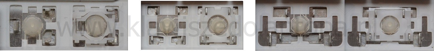 - W większości klawiatur wyglądających identycznie z zewnątrz stosowane były różne typy mocowań pod klawiszami.