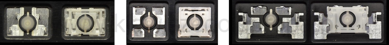 *Zdarza się, że w poszczególnych modelach klawiatury stosuje się więcej typów mocowań niż te trzy pokazane na zdjęciach; niektóre klawisze mają też metalowe zawiasy.
