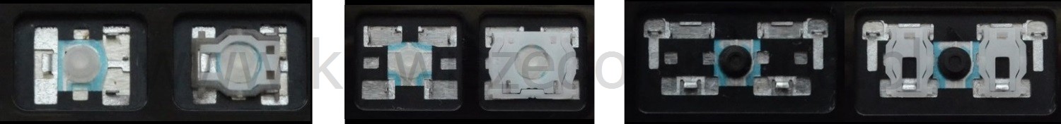 - W większości klawiatur wyglądających identycznie z zewnątrz stosowane były różne typy mocowań pod klawiszami.