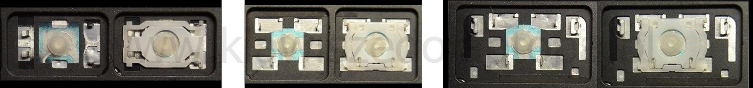 *Zdarza się, że w poszczególnych modelach klawiatury stosuje się więcej typów mocowań niż te trzy pokazane na zdjęciach; niektóre klawisze mają też metalowe zawiasy.