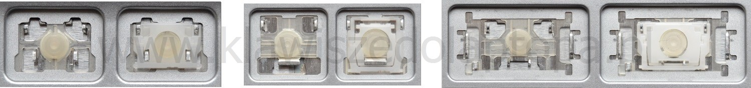 *Zdarza się, że w poszczególnych modelach klawiatury stosuje się więcej typów mocowań niż te trzy pokazane na zdjęciach; niektóre klawisze mają też metalowe zawiasy.