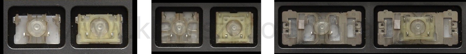 - W większości klawiatur wyglądających identycznie z zewnątrz stosowane były różne typy mocowań pod klawiszami.