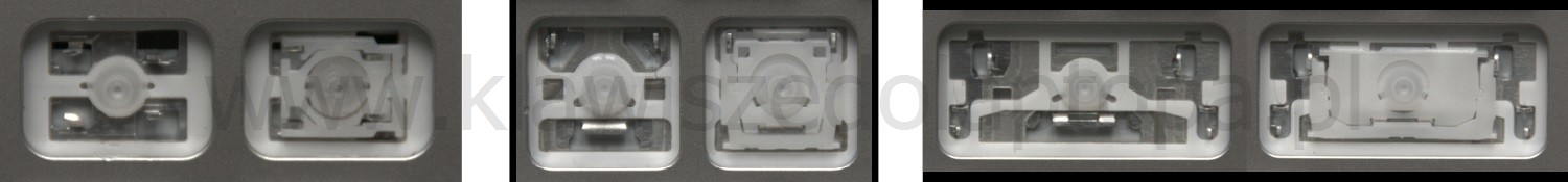 *Zdarza się, że w poszczególnych modelach klawiatury stosuje się więcej typów mocowań niż te trzy pokazane na zdjęciach; niektóre klawisze mają też metalowe zawiasy.