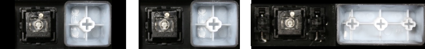 - Aby wybrać właściwy model, porównaj zdjęcie pustego miejsca na swojej klawiaturze ze zdjęciami poniżej, ewentualnie zdejmij klawisz „A” - pod nim zawsze jest zaczep średni.
